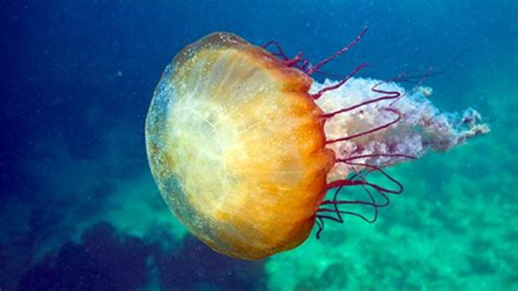 Two aquatic animals occupy some alien (or perhaps earthly) sea, one large and the other small. The large one is a sedentary herbivore that spends its days floating around, nibbling quietly on plants. The small one is a voracious predator that’s too tiny to kill the prey it prefers - but it has an ingenious mechanism to get what it wants; it is a parasite that attaches itself to the nervous system of the larger animal, thereby gaining control over it. With the small animal thus inserted, the large one adopts a new character, changing colors and becoming a furious monster. The two combined constitute an entirely different creature than either alone. This deadly pair kills the small creature’s large prey. The parasite then detaches itself, and the large animal resumes its original harmless nature.
